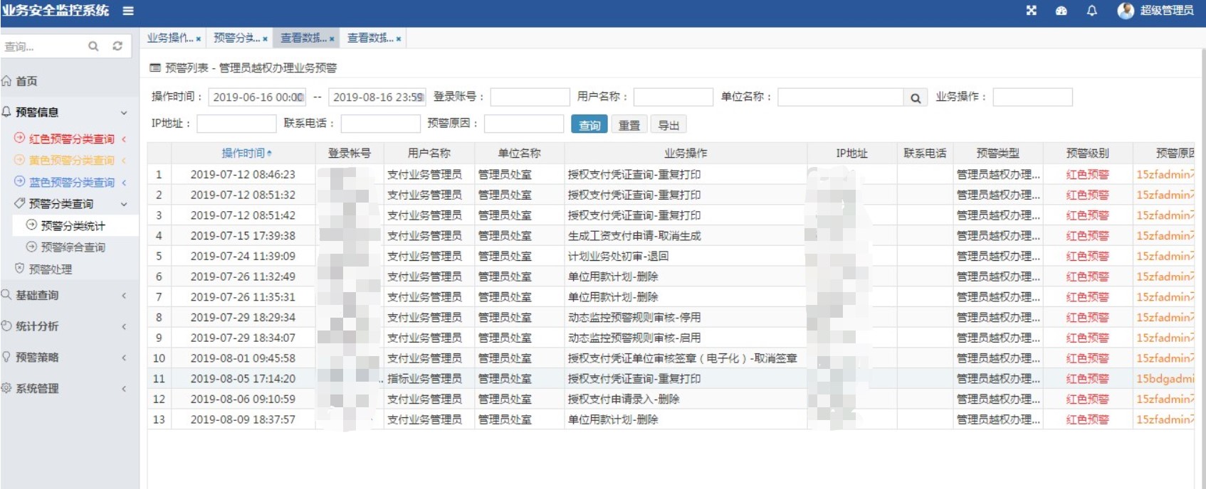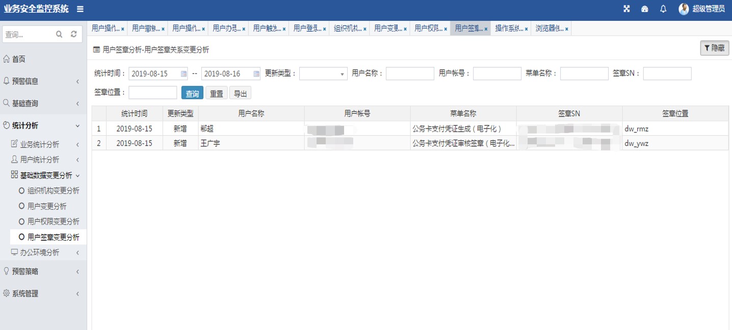 内蒙古自治区财政厅国库支付业务安全审计系统,通过建立完善的安全审计机制,实现国库集中支付全流程监控,做到“操作有记录、事中可监控、结果可追溯”,加强财政国库支付系统的安全管理,提升风险防控能力,保障财政资金安全。通过对国库支付业务操作日志实时在线审计,在不影响业务的同时,实现用户操作行为的集中监控,并对业务单据和操作指令进行用户画像、数据还原展现,错误或失败原因统计分析,提供业务系统优化建议;针对业务人员或管理员不规范业务操作实时记录,预警推送,为事后故障分析和责任界定提供有力证据。对系统用户、管理员权限变更等高风险、敏感业务实时预警提醒。业务审计系统通过与国库支付业务系统数据库对接,同步基础数据,对业务系统的组织机构变更、用户变更、用户权限变更、用户签章关系变更生成统计报表,形成对运维管理人员的工作监督,工作量统计等。